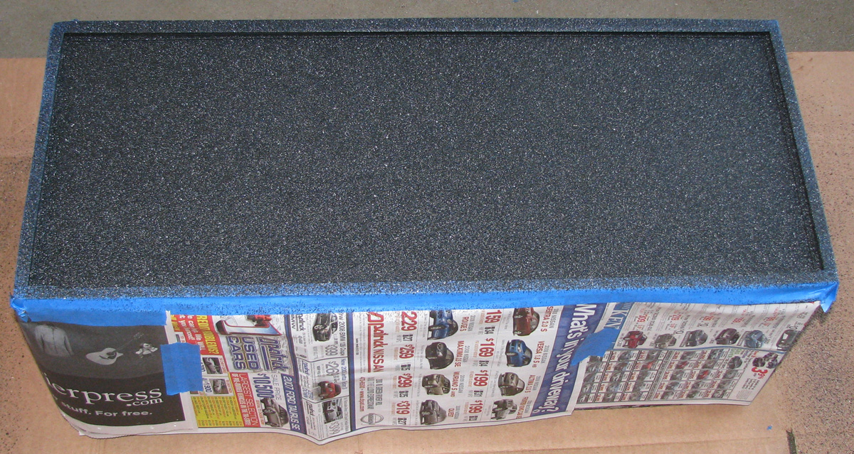 Then just place the newspaper up against the sides and fold the tape down. Overlap each piece and add tape where necessary to make sure no over spray gets on the sides.