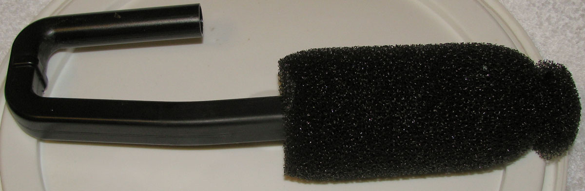 Prefilter sponge showing zip-tied end: