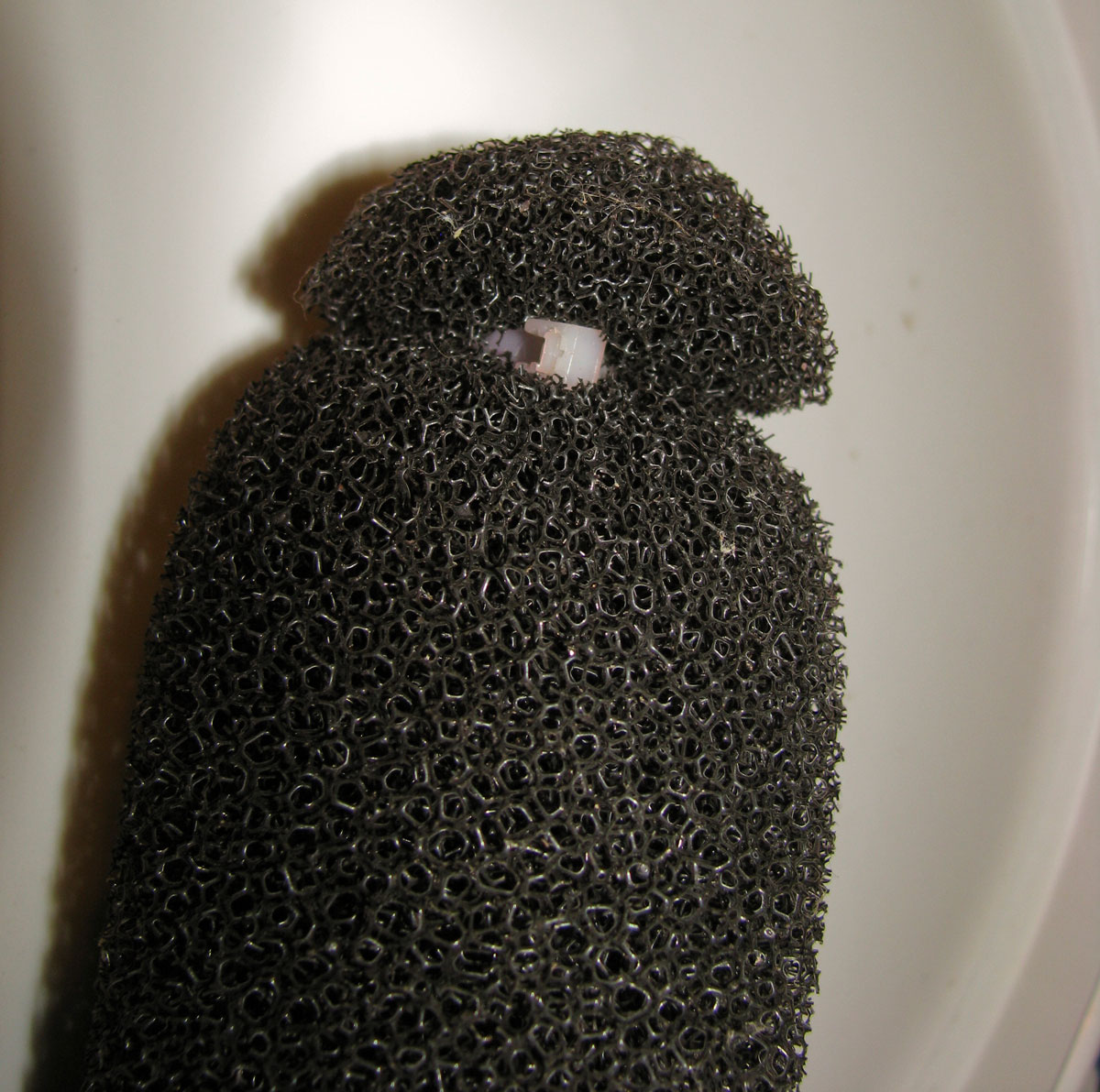 Prefilter sponge showing zip-tied end: