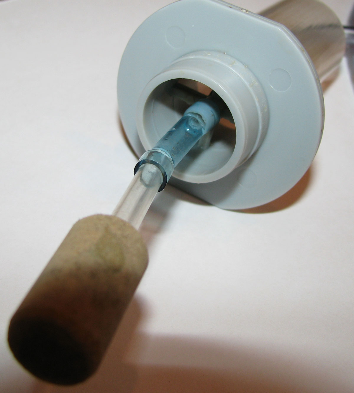 Next, place the sponge filter in the tank. I would recommend using the Lustar Hydro Sponge III filter. It is bigger than needed, but it will give the fry additional area where they can graze on micro-organisms. Also, it has a weighted foot that keeps the sponge material off the bottom of the tank. These filters have a place to attach the airline to the top of the assembly and the air would be released inside the sponge, but I prefer to put a small piece of airline and an air stone inside the cavity in the middle of the sponge. If you don't do that, then the air bubbles are too big and sometimes cause fry to get sucked into the lift tube.